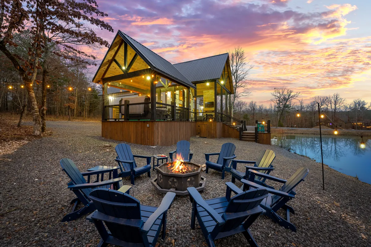Indulge in pure bliss at Wander Broken Bow Willow, a stunning pondside retreat.