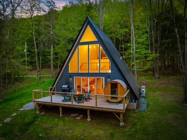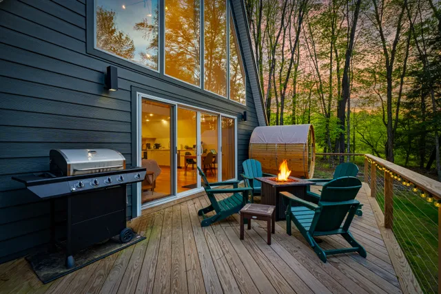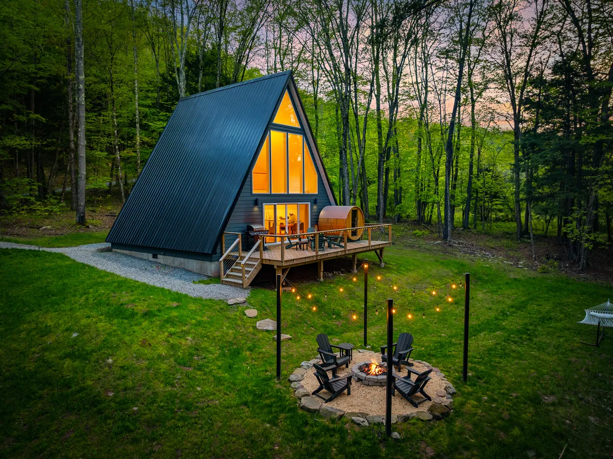 Wander Catskills Ridge is a stunning cabin that blends modern elegance with a cozy, inviting atmosphere in the Catskills Forest.