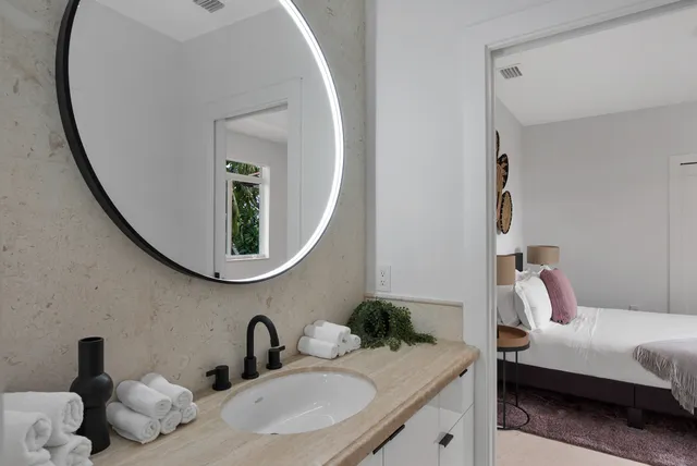 Wander Coral Gables Palms is a luxurious getaway featuring a resort-style outdoor pool, hot tub, and BBQ area for relaxation and outdoor dining. The property also includes a private basketball court and a game room, offering fun for all ages. With modern amenities and spacious, elegant design, this home provides the perfect blend of leisure and comfort, making it an ideal retreat for both relaxation and entertainment in the heart of Coral Gables.