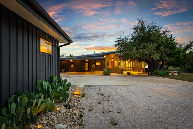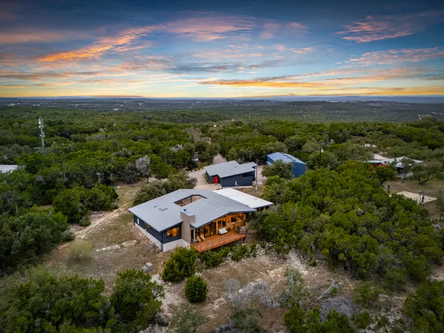Wander Dripping Springs is a serene retreat set in a stunning wooden house surrounded by lush forest views.