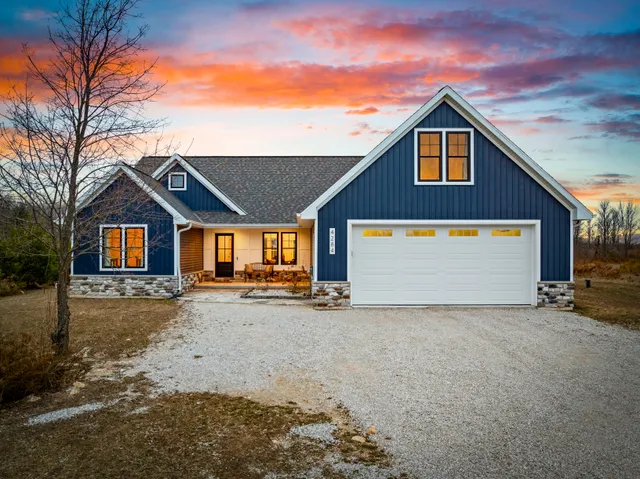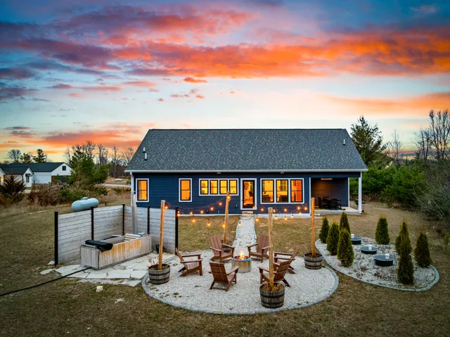 Escape to Wander Egg Harbor, a modern ranch home nestled in the heart of Egg Harbor, Wisconsin, amidst the stunning landscapes of Door County.